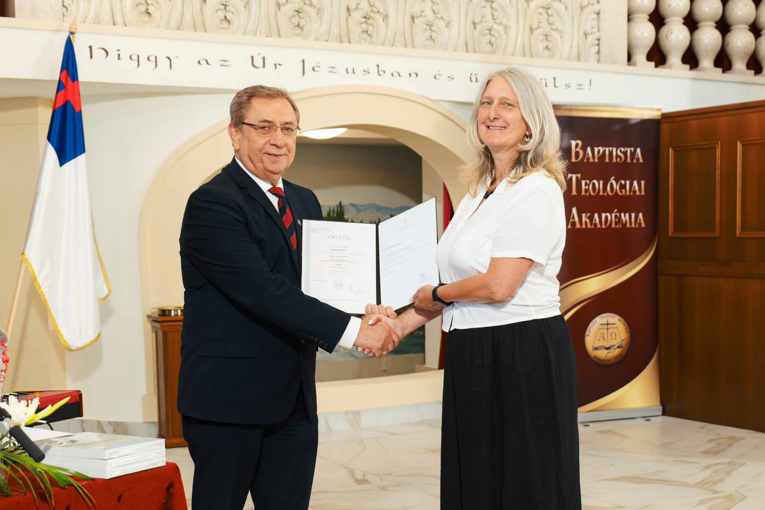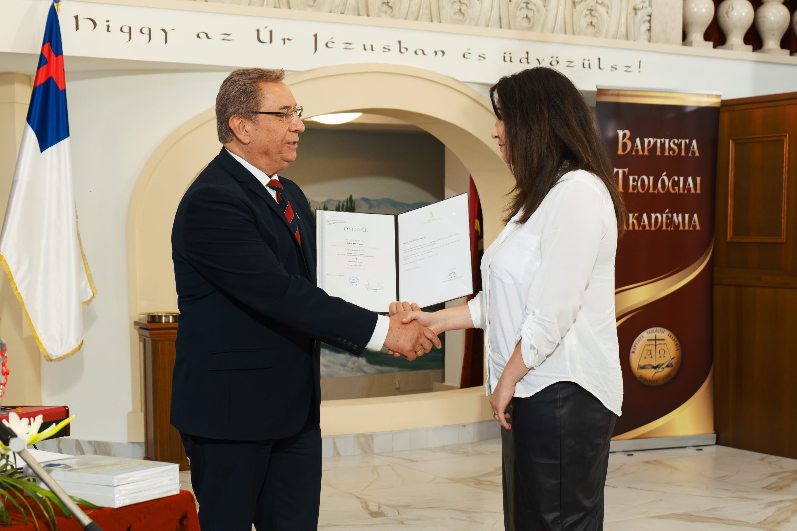 Szlovák Tibor példamutató helytállással, nyugdíjas lelkipásztorként kiváló eredménnyel végezte el az MA szakot. Mindig jelen volt az órákon, kiemelkedő teljesítményt nyújtott a TDK versenyben. Hallgató társai előtt példa volt és aktívan támogatta őket.