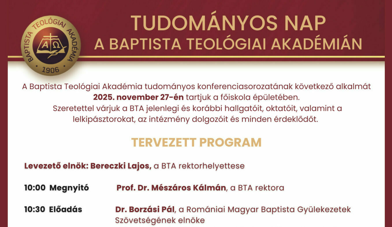 A Baptista Teológiai Akadémia 2022-ben indult tudományos konferenciasorozatának második alkalma 2022. november 24-én került megrendezésre.